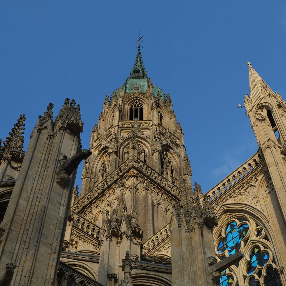 Promenade le soir à Bayeux qui me rappelle un peu Bourges, très belle cathédrale, magnifique platane de la liberté à coté. Je dine en terrasse (cad un peu sous la pluie quand même) d’une pizza WTF (camembert, pomme, crème).