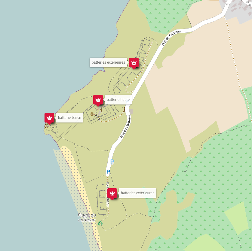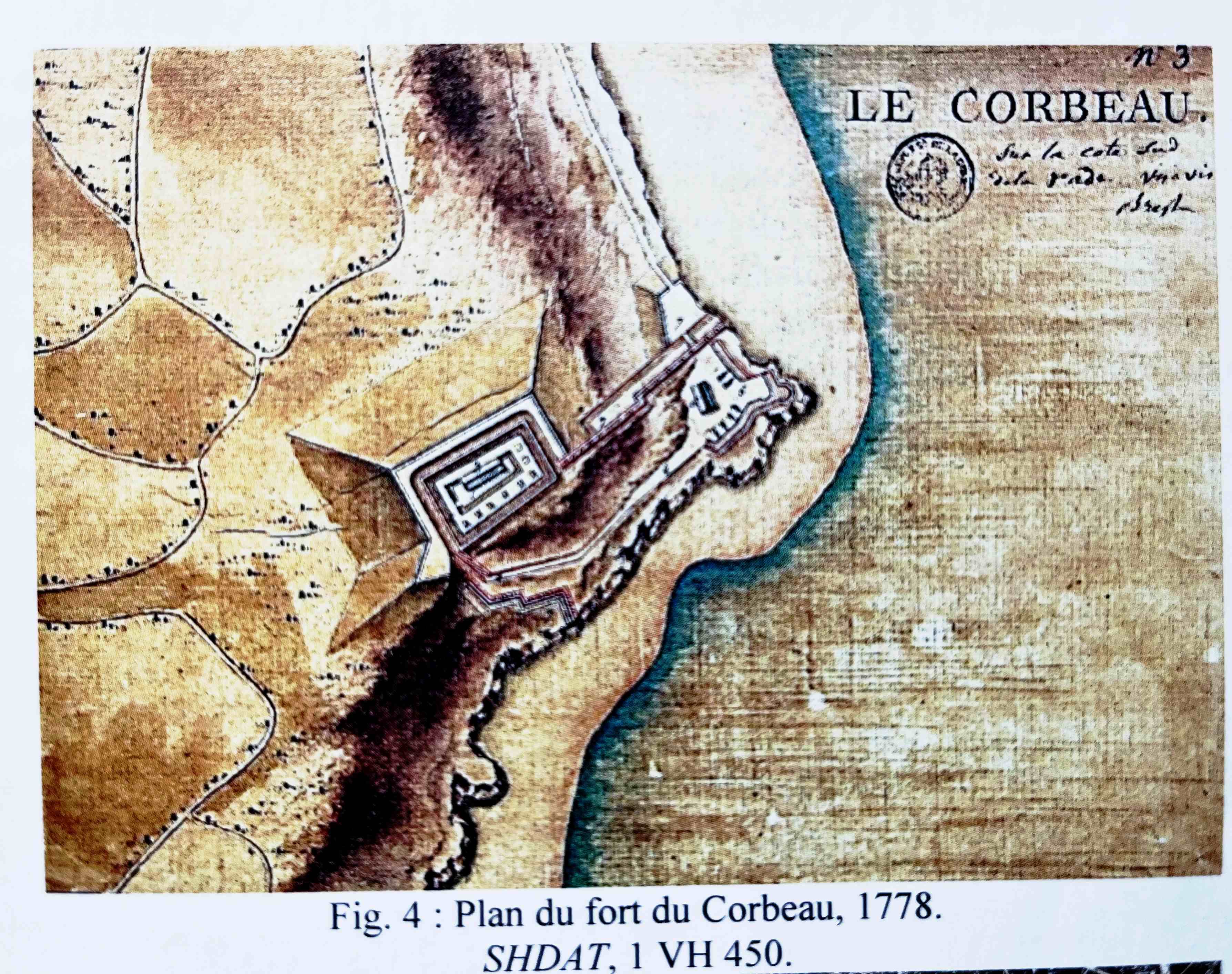 Et 2 cartes tirées de Les cahiers de l'IROISE, Vues sur rade, Hors Série N°8, Société d'Etudes de Brest et du Léon Un balcon Fortifisé sur la rade : Le fort du Corbeau, Patrick Jadé, septembre 2020.