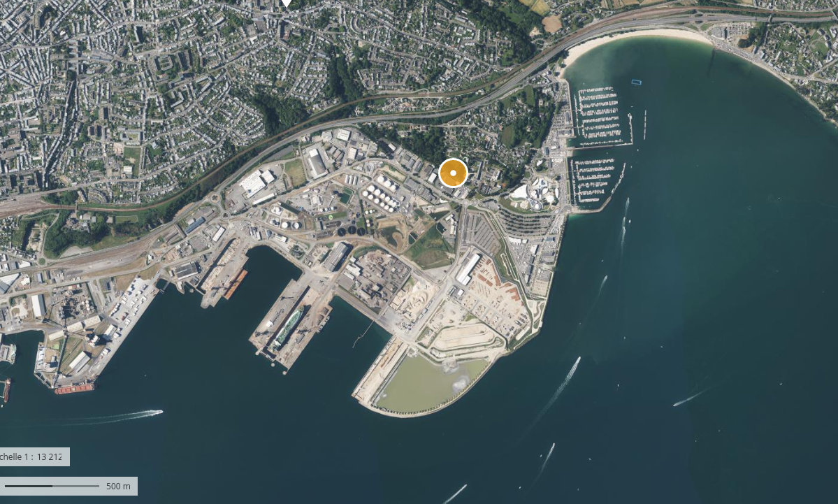 La ZI Portuaire, le terminal EMR, Océanopolis étaient dans l'eau est bâtie sur le polder.