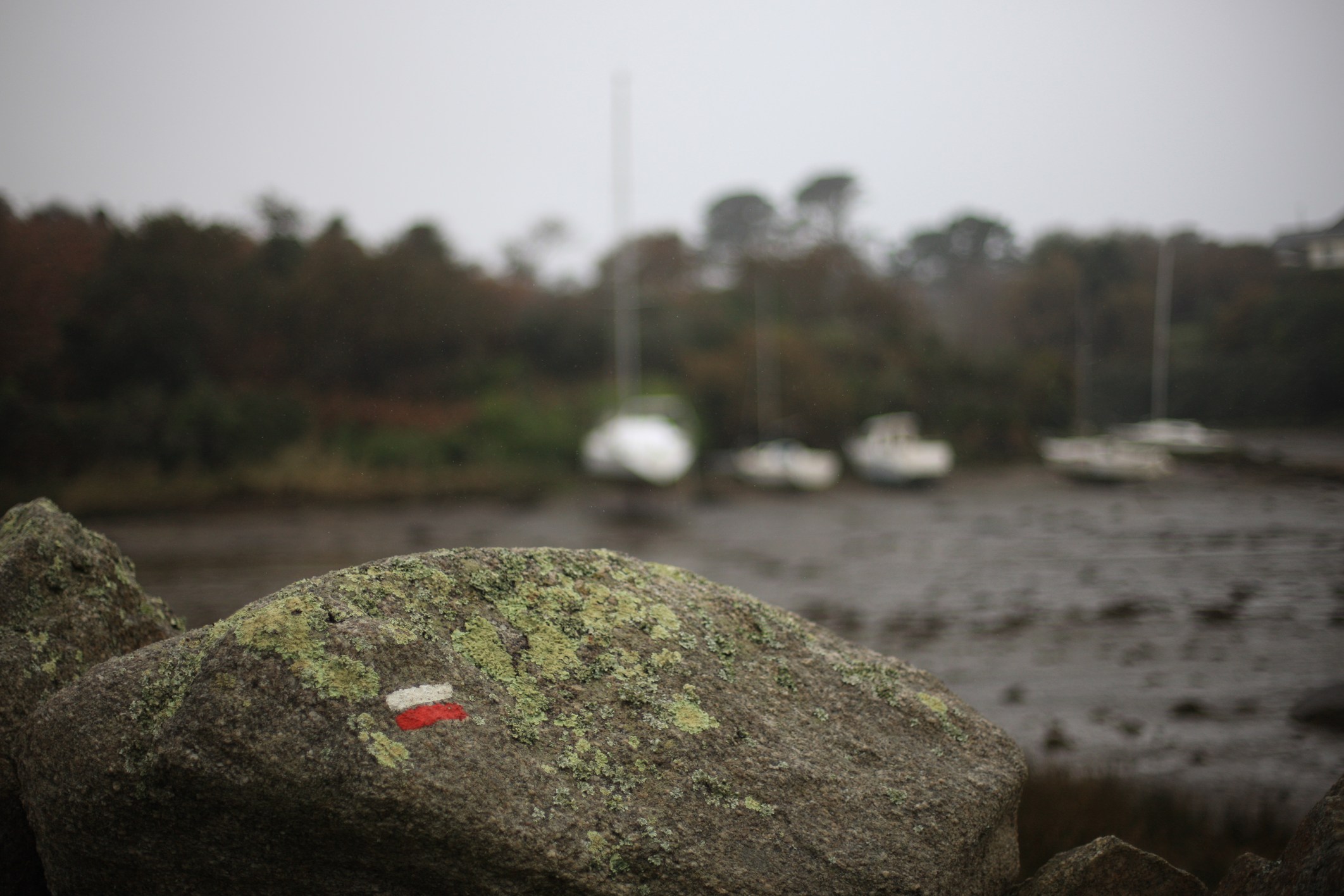 Le GR (sentier des douaniers) est indiqué par des rubans rouges et blancs à chaque traversée de chemins, c'est pratique on le repère bien.
