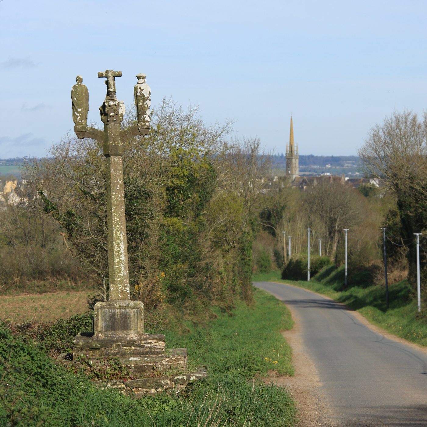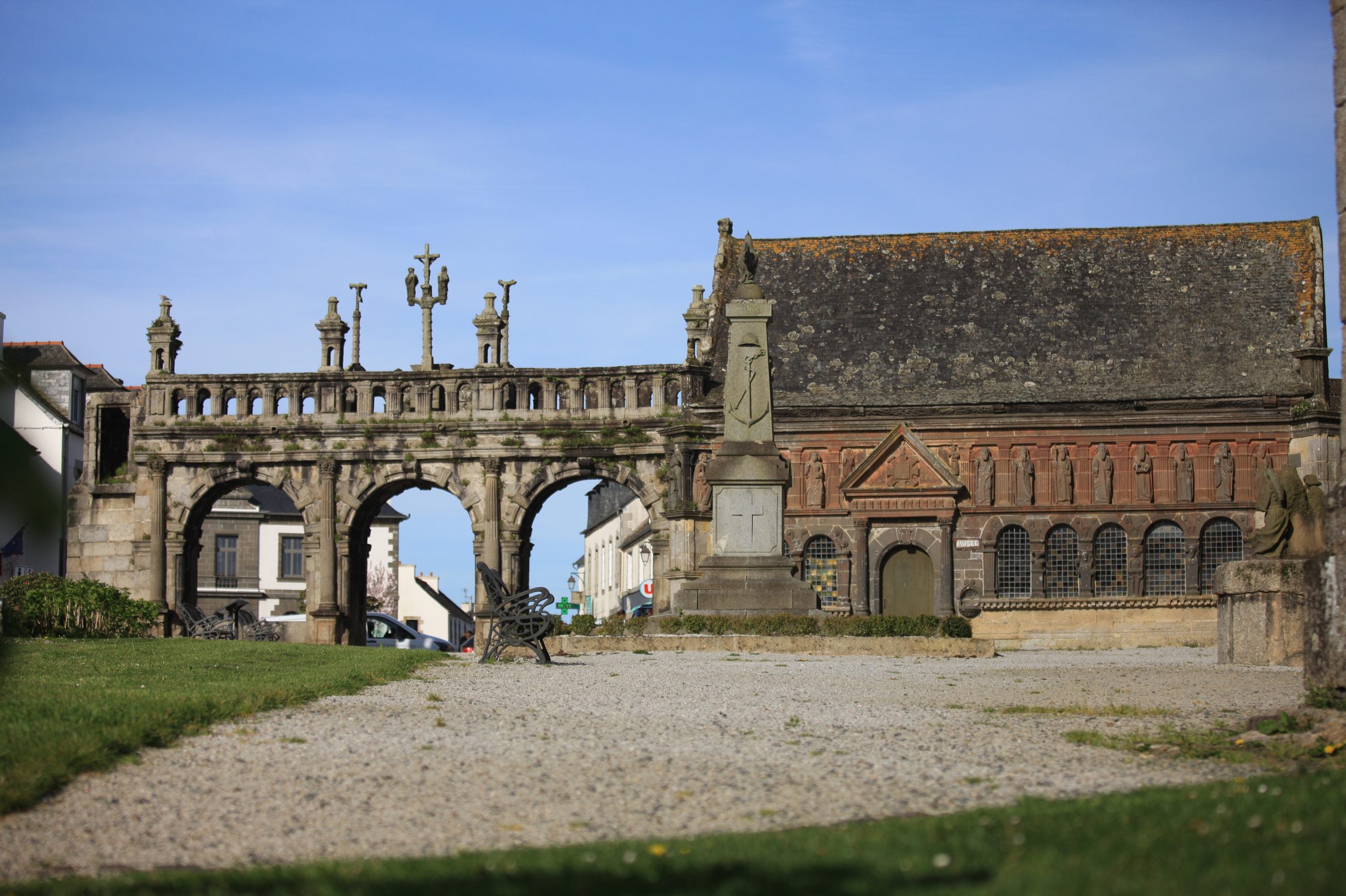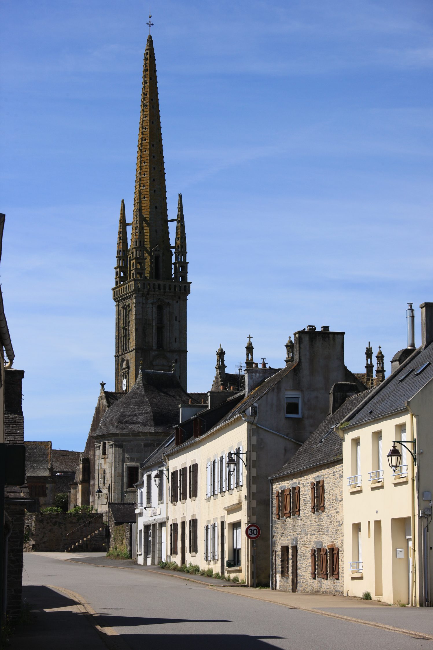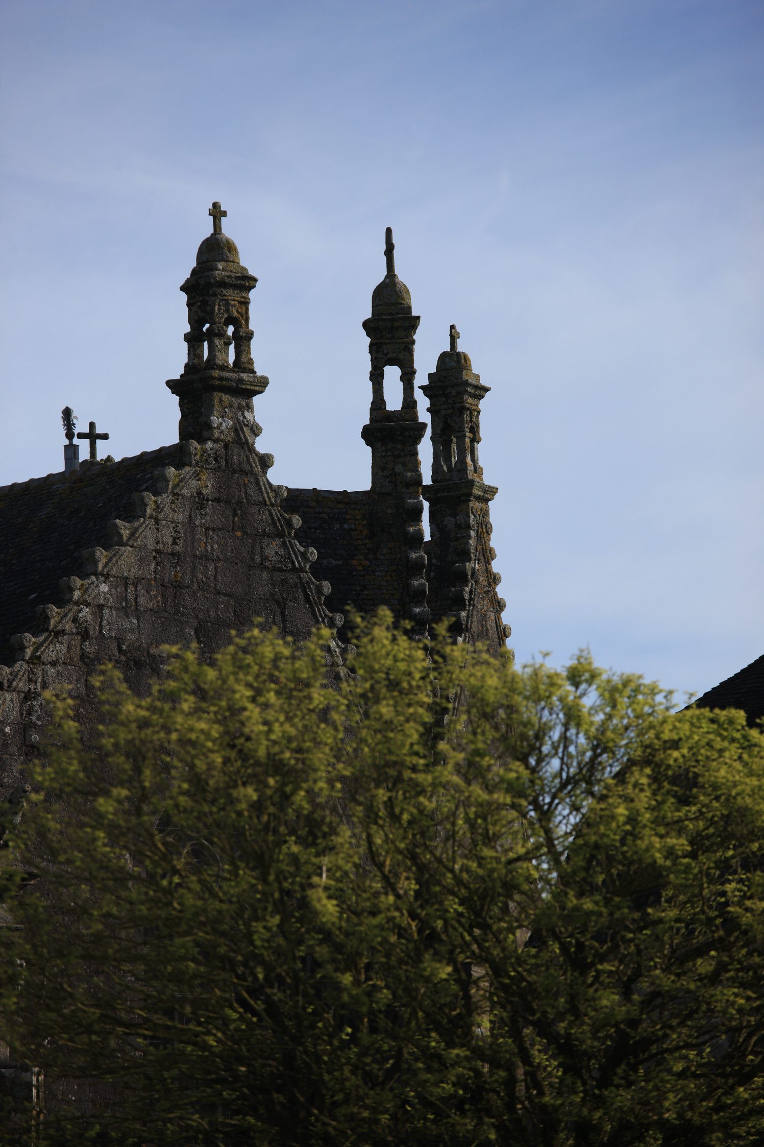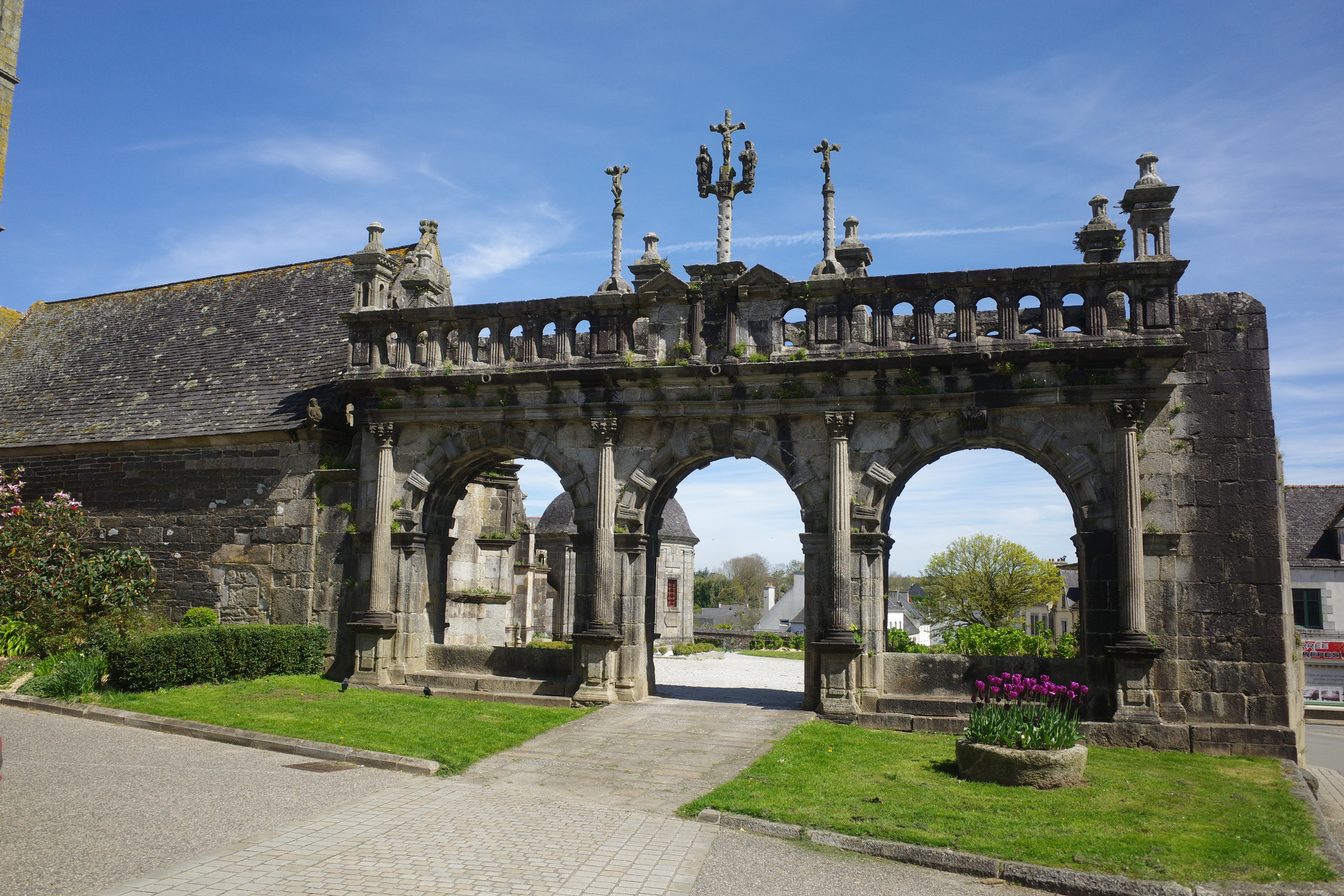 Départ de Sizun, où l'on a tout intérêt à prendre le temps d'admirer l'enclos paroissial. L'église est en travaux.