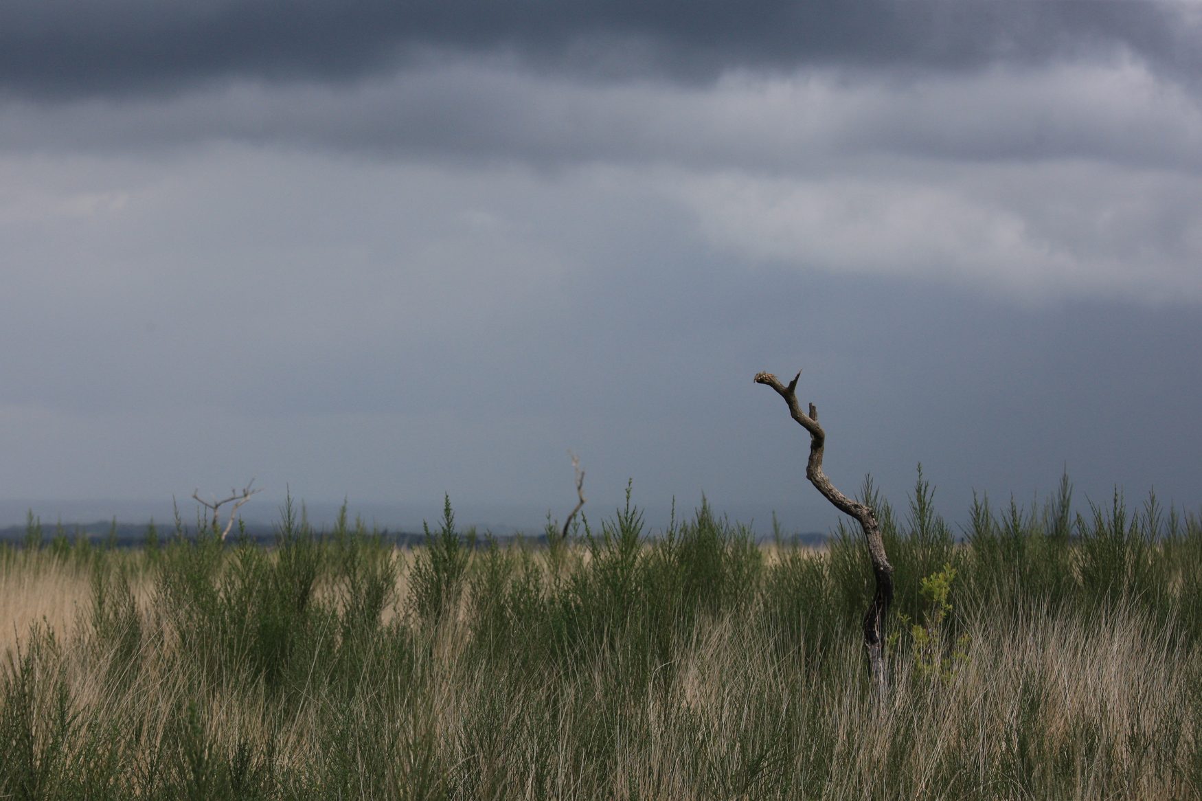 C'est à partir de ce moment, que les choses se sont gâtées. A ce point de la boucle, on se retrouve sur la crête sans aucun couvert disponible et bien sûr, la pluie est arrivée. Une fine pluie, ni une ni deux, un des rares arbres encore debout malgré incendies et tempêtes m'offrent un répit bienvenu pour casser la croûte.