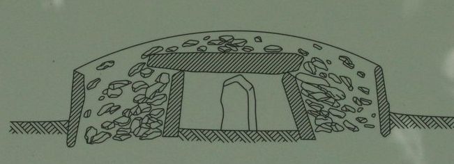 Dolmen néolithique (3000 av JC), il est dit "en V" avec une ouverture large qui va s'amenuisant au fur et à mesure qu'on avance dans la structure. Un "pilier" central qui pourrait être une stèle (non si on l'enlève tout ne s'écroule pas).