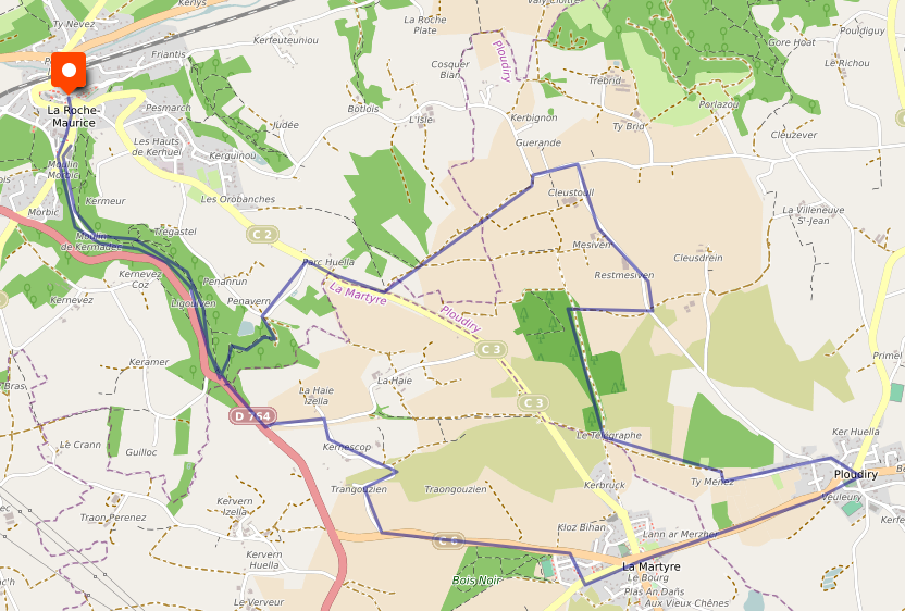A noter que la balade n'amènera pas à des points de vue sur le château ou le bourg de la Roche Maurice.