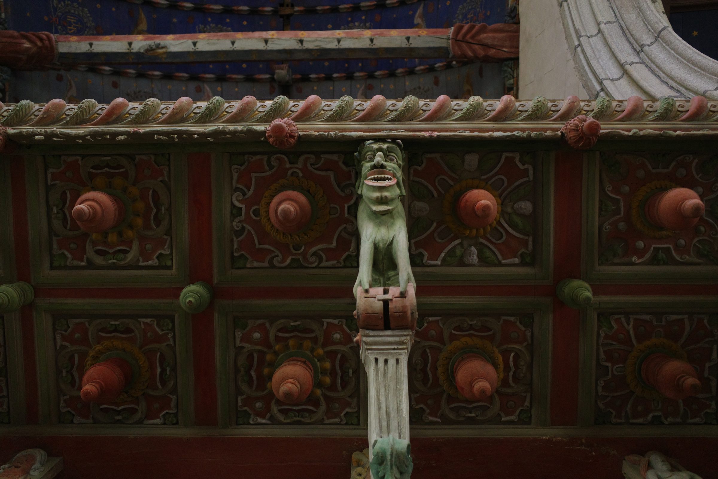 Point notable, un escalier en pierre permet d'accéder au sommet du portail.