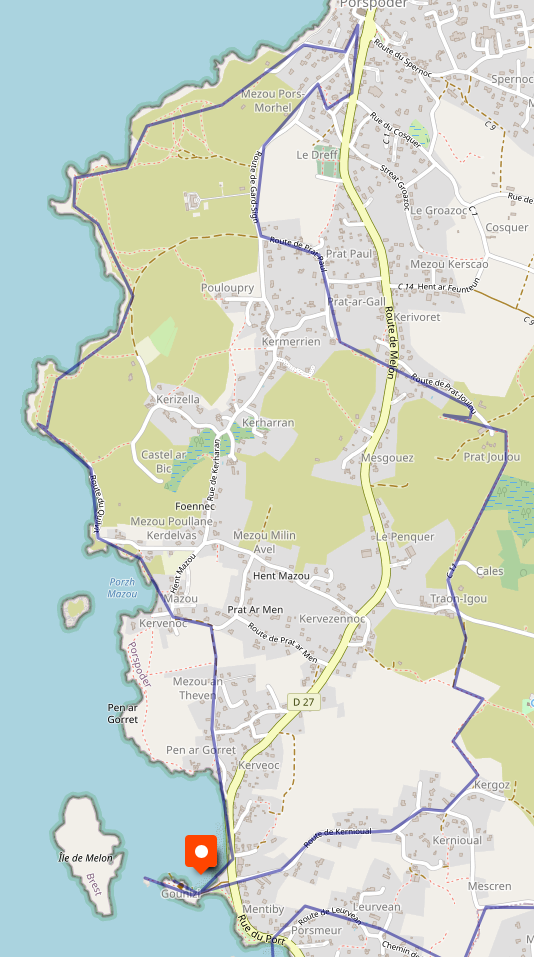 Le trajet reprend pour partir le n°26 du guide FFRP Le Pays d'Iroise à Pied, sauf que j'ai raté la chapelle Saint-Ourzal qui a été restaurée.