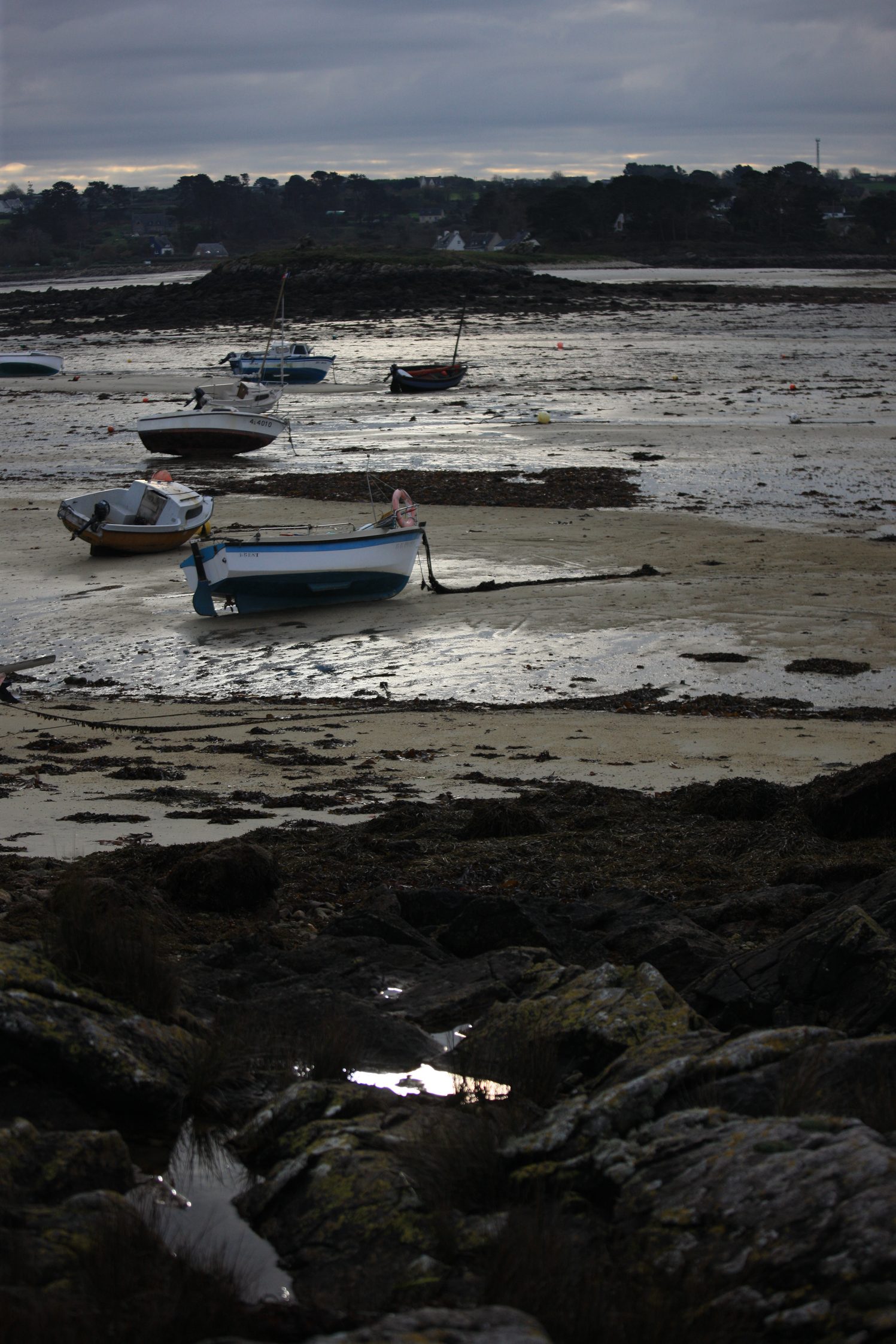 Au retour je coupe par la baie, on est à marée basse avec un coeff de 104, les pécheurs à pieds sont de sortie mais les bateaux sont posés sur le sable. Ils ne sont pas assez rouillés pour moi, mais ça fera l'affaire.