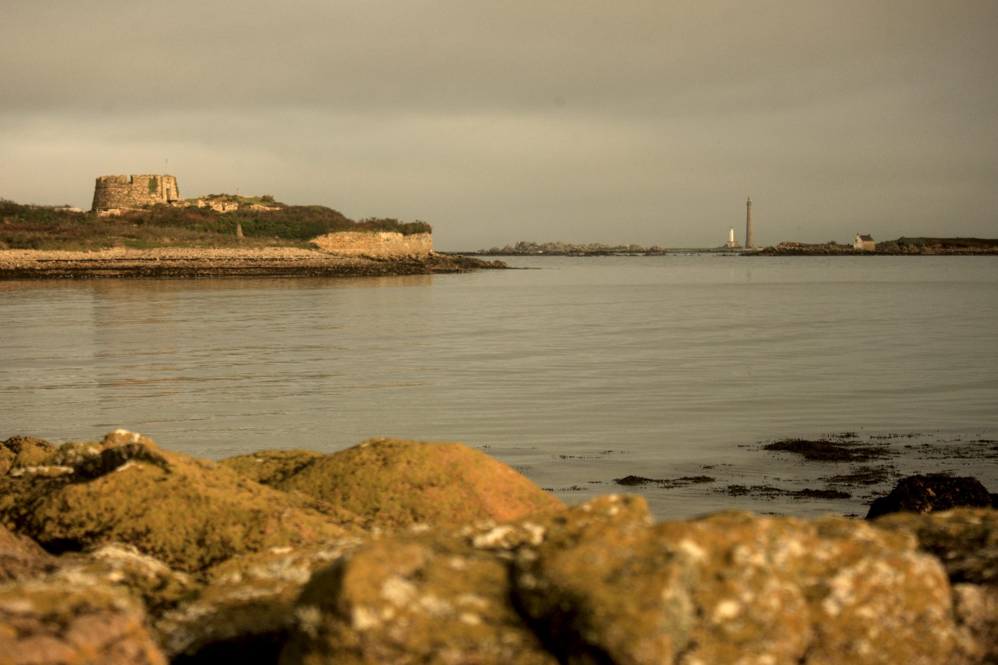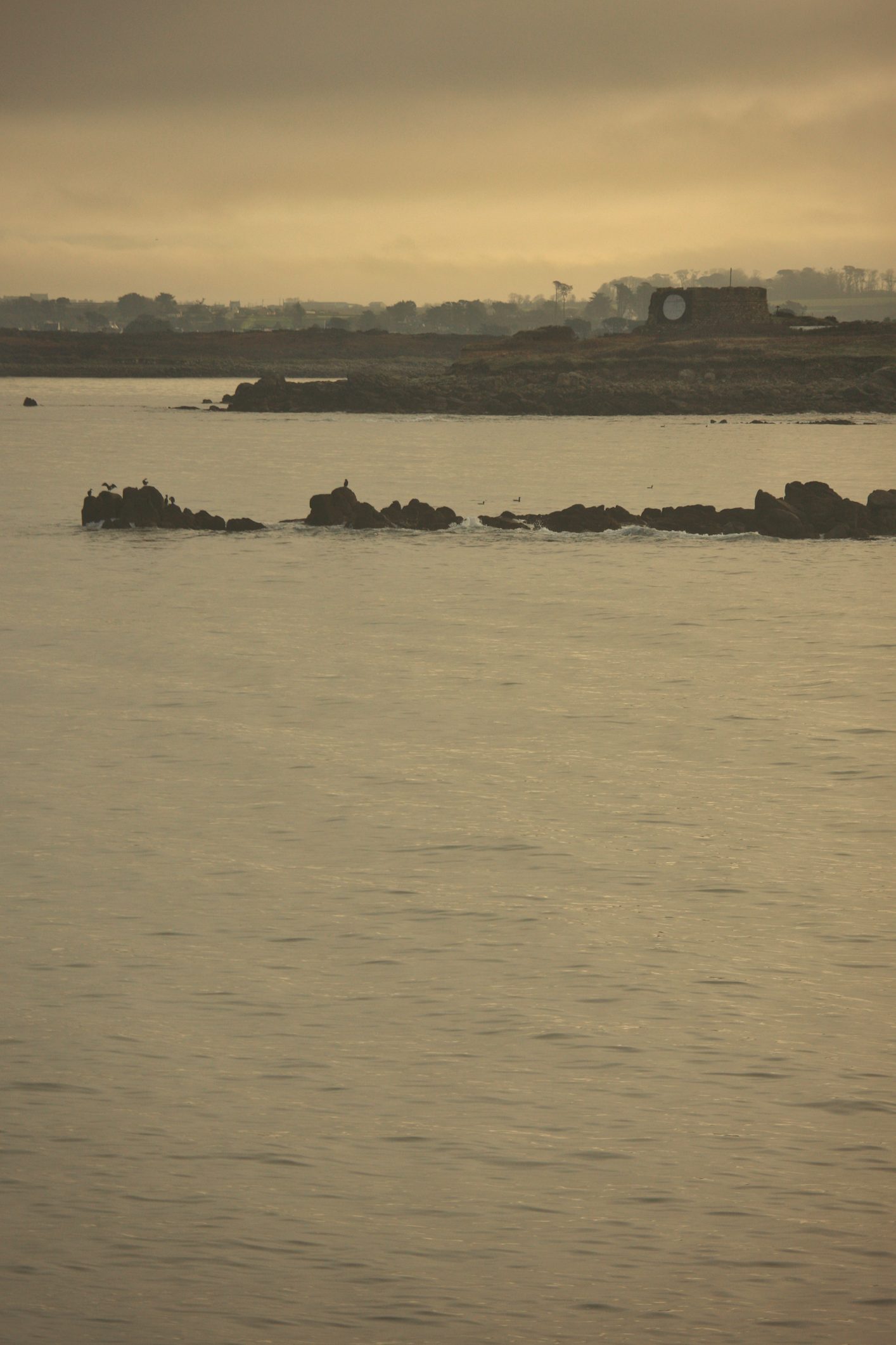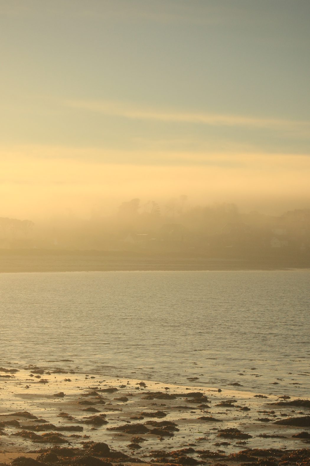 25 décembre, brouillard sur Brest, mais sur la côte nord, le soleil parvient à percer et à offrir de belles lueurs orangées (voir très orangées dans le cas présent, rapport au filtre polarisant)