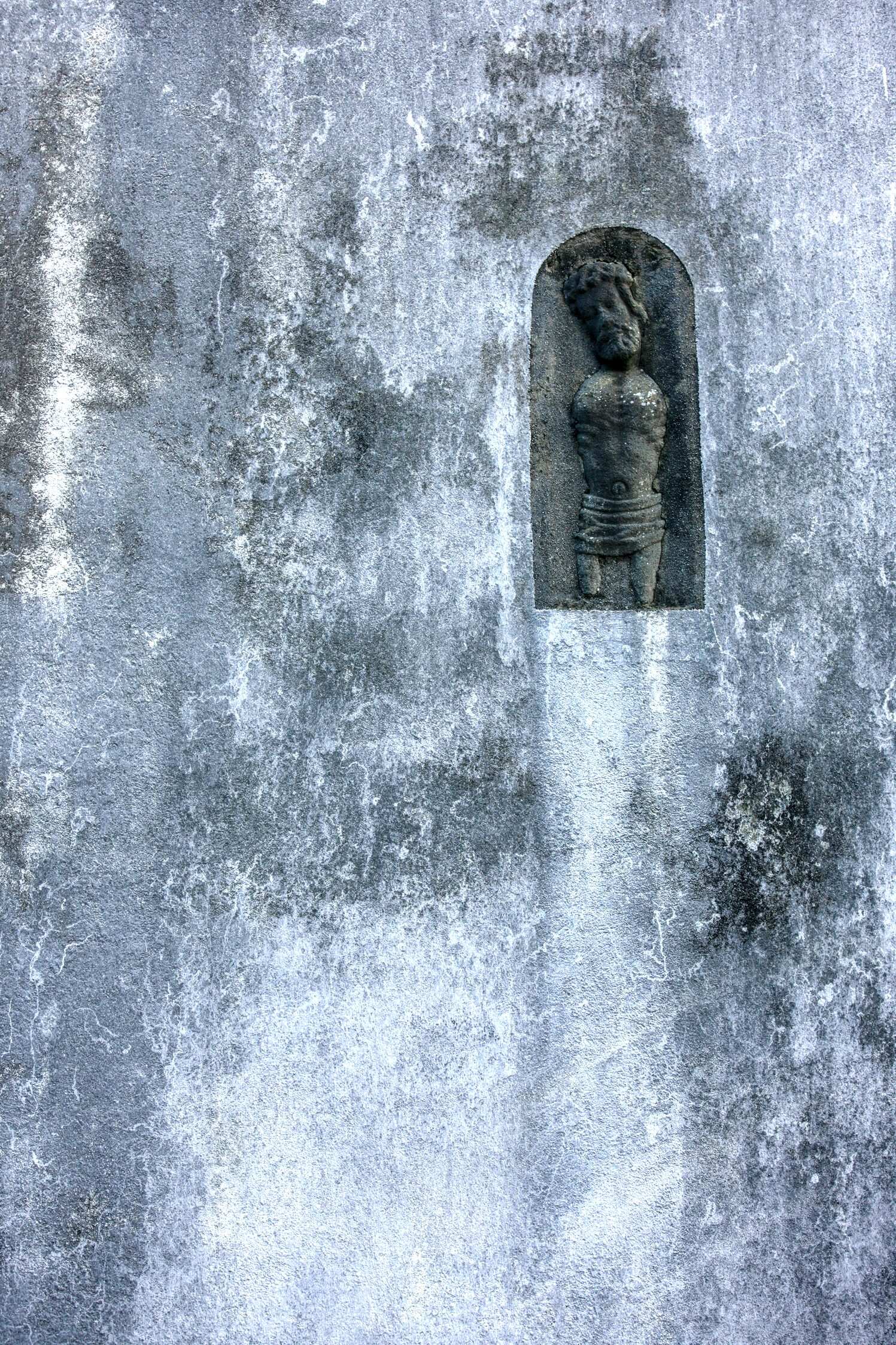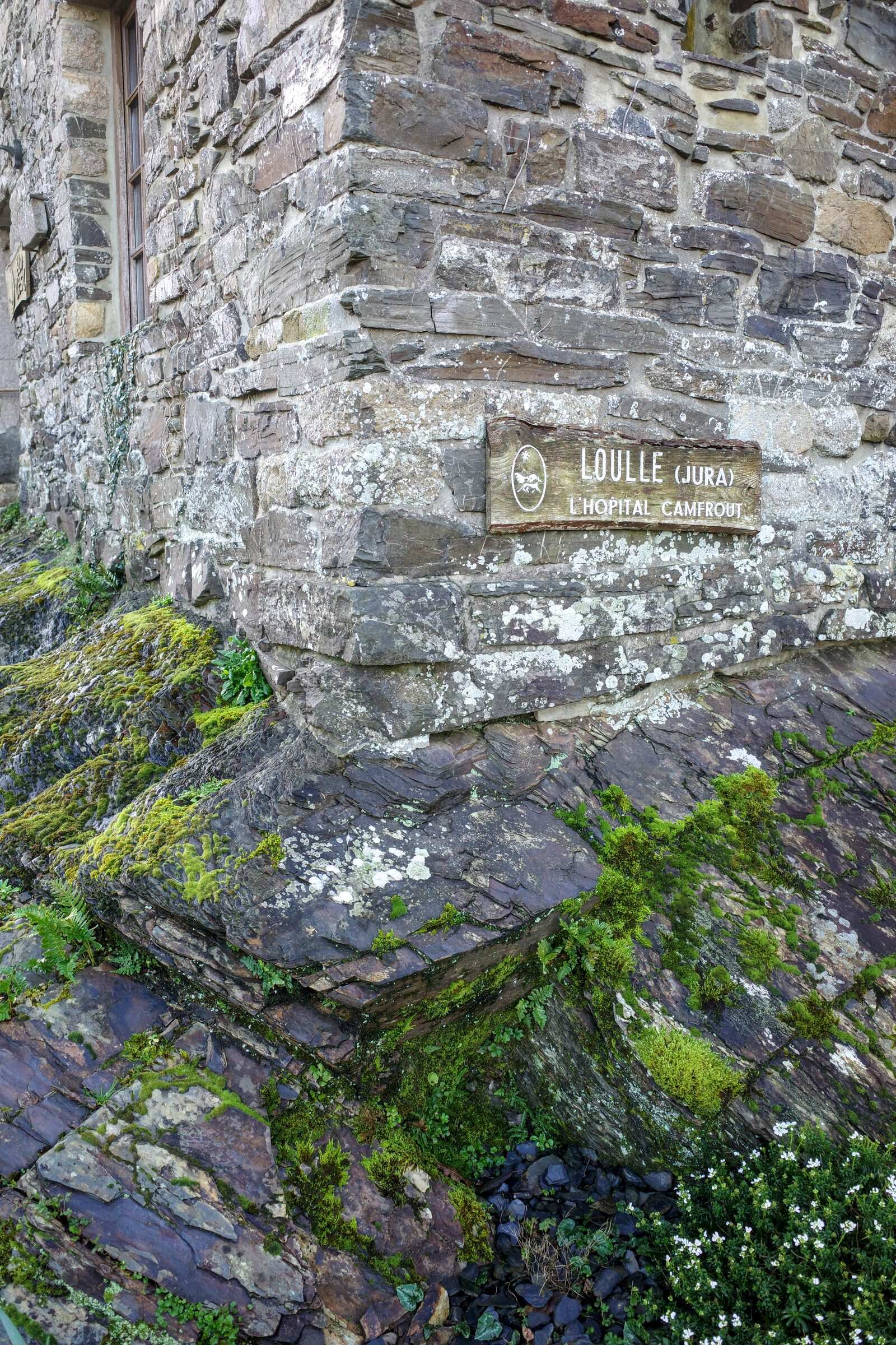 La maison de droite est posée sans fondation sur le rocher et construite en blocs de grès gris/brun, la second est en pierres de Logonna taillées et appareillées.