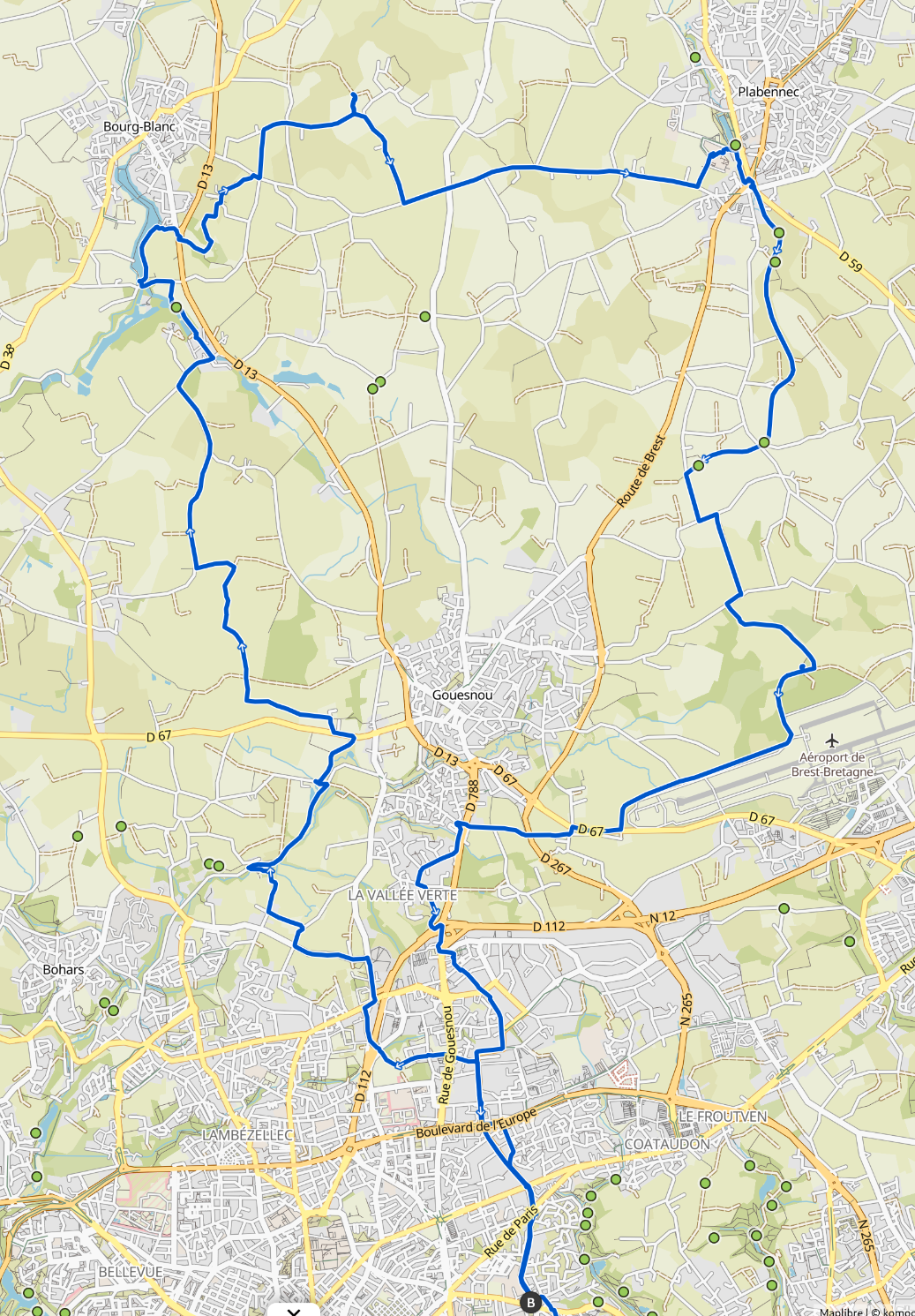 Trace gravel à la base, sentiers sympas bien que boueux, la section Plabennec/Gouesnou est très agréable.